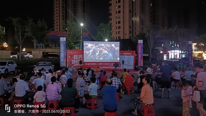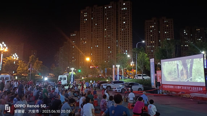 2023年6月10日晚 山水奥特莱斯广场公益电影放映现场(金安区宝威体育 局拍摄)