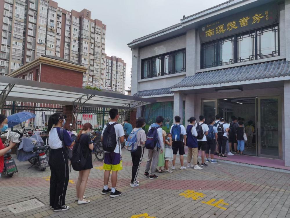 舒城县南溪悦书房,群众在排队准备进入