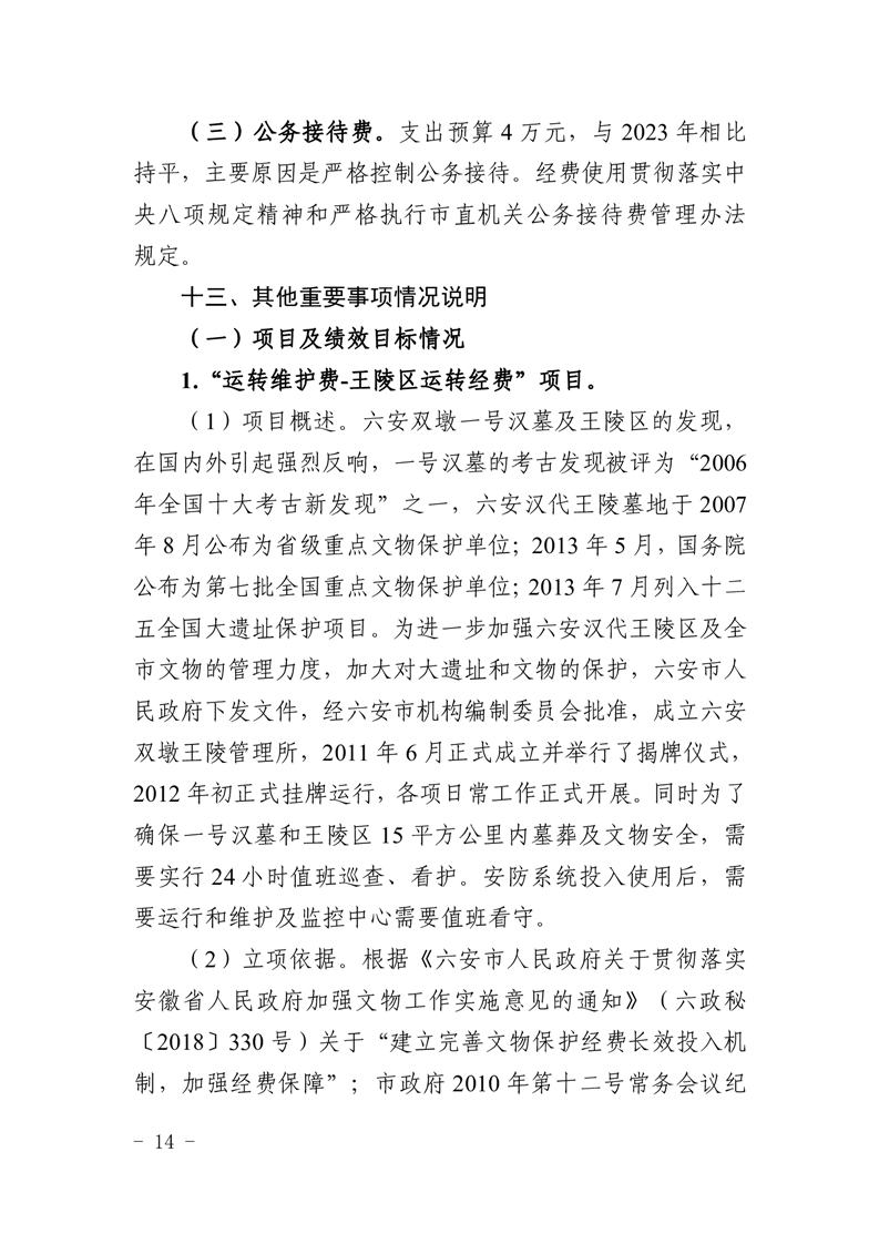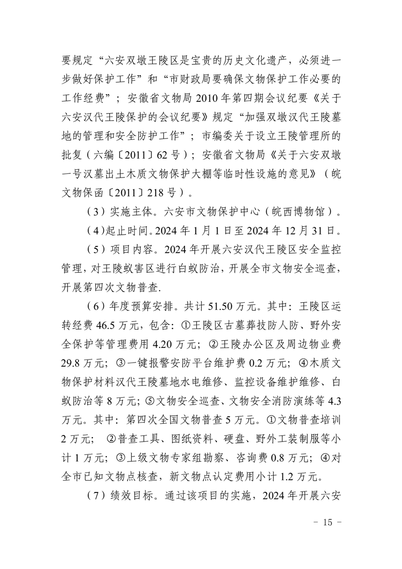 表14六安市文物保护中心(皖西博物馆)2024年项目支出绩效目标表.pdf标签: