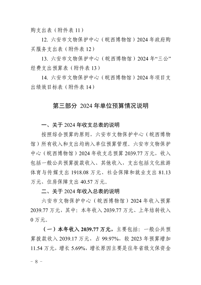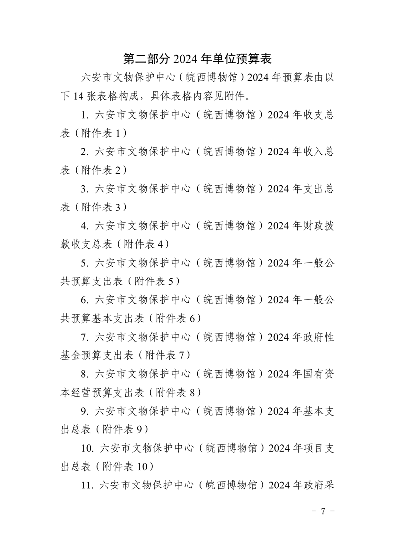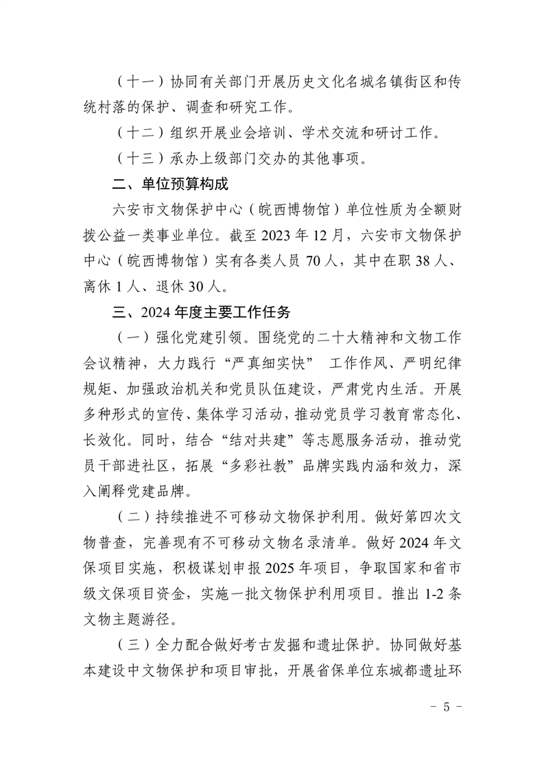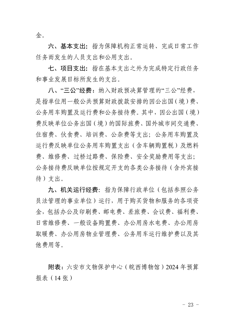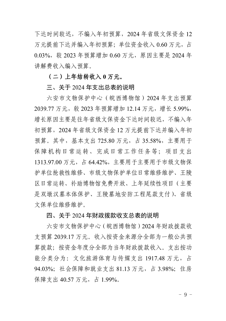 六安市文物保护中心(皖西博物馆)2024年单位预算公开