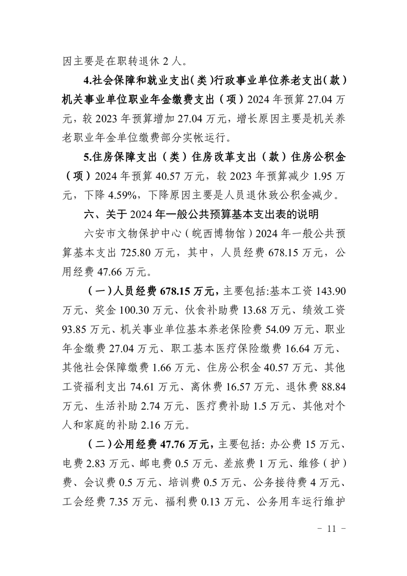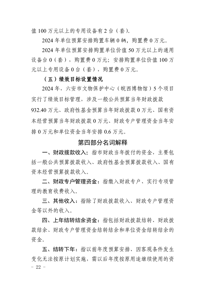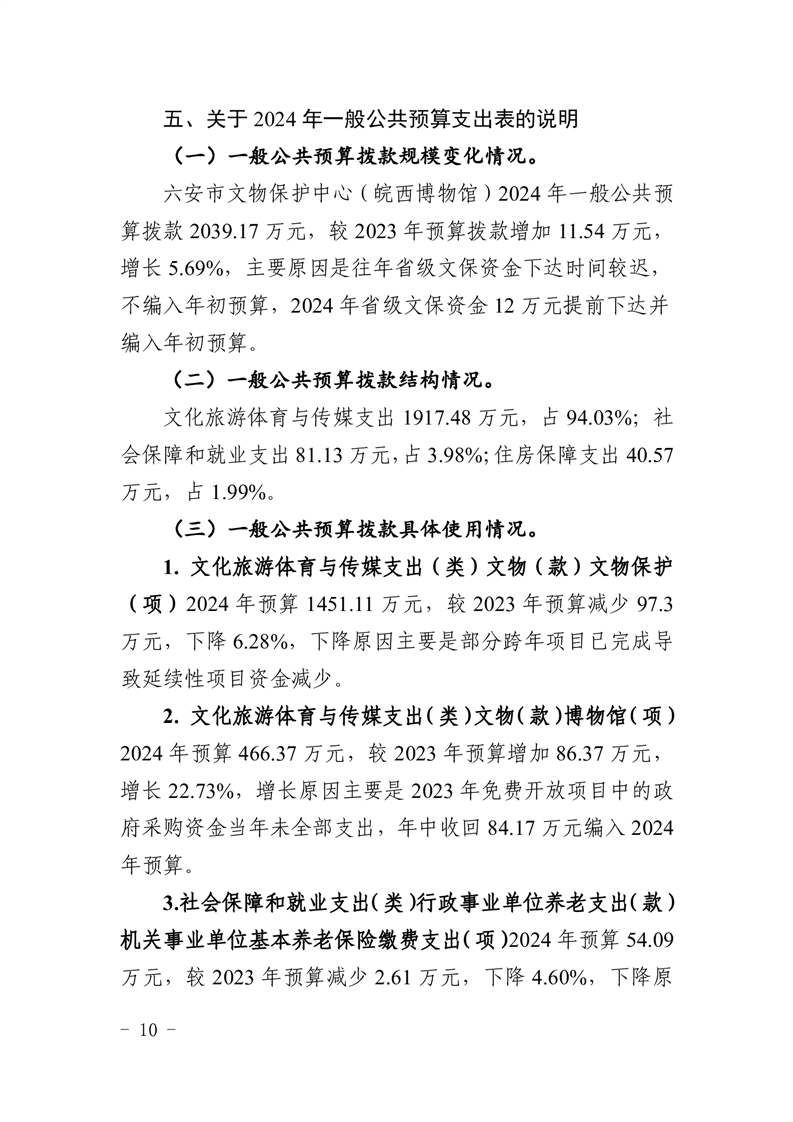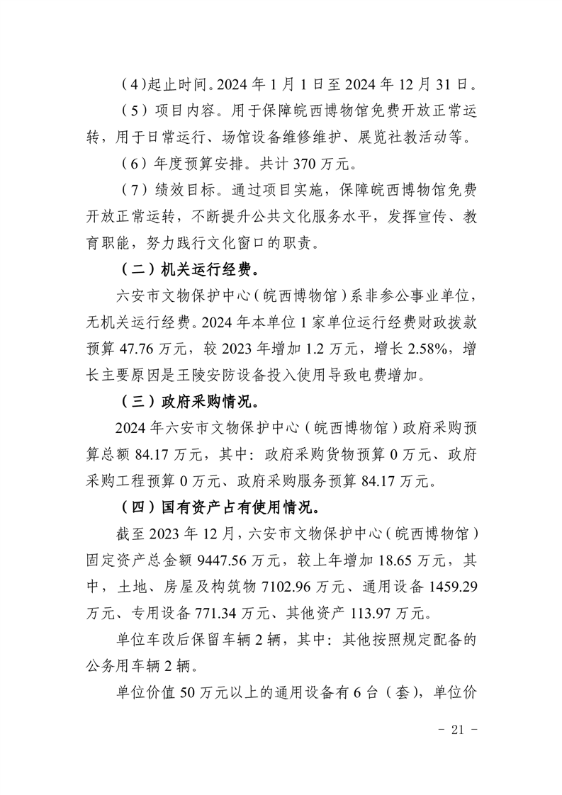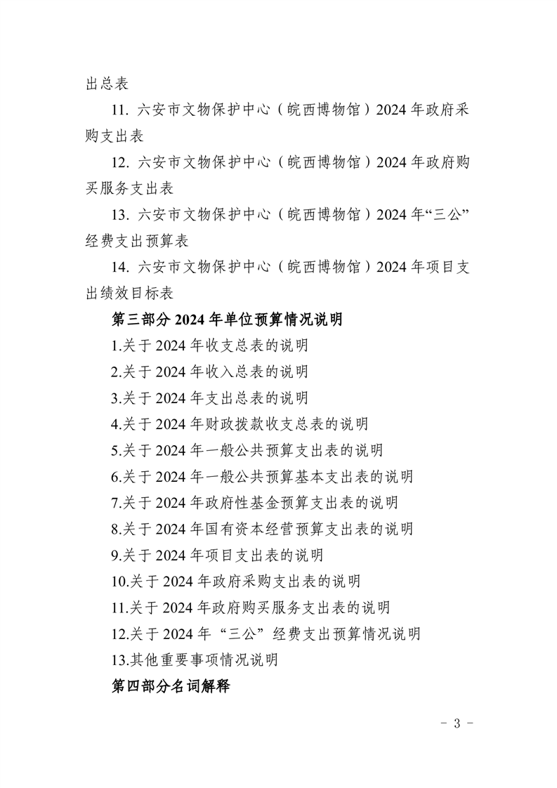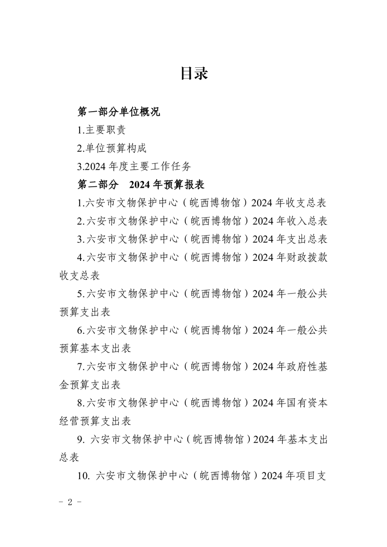 六安市文物保护中心(皖西博物馆)2024年单位预算公开