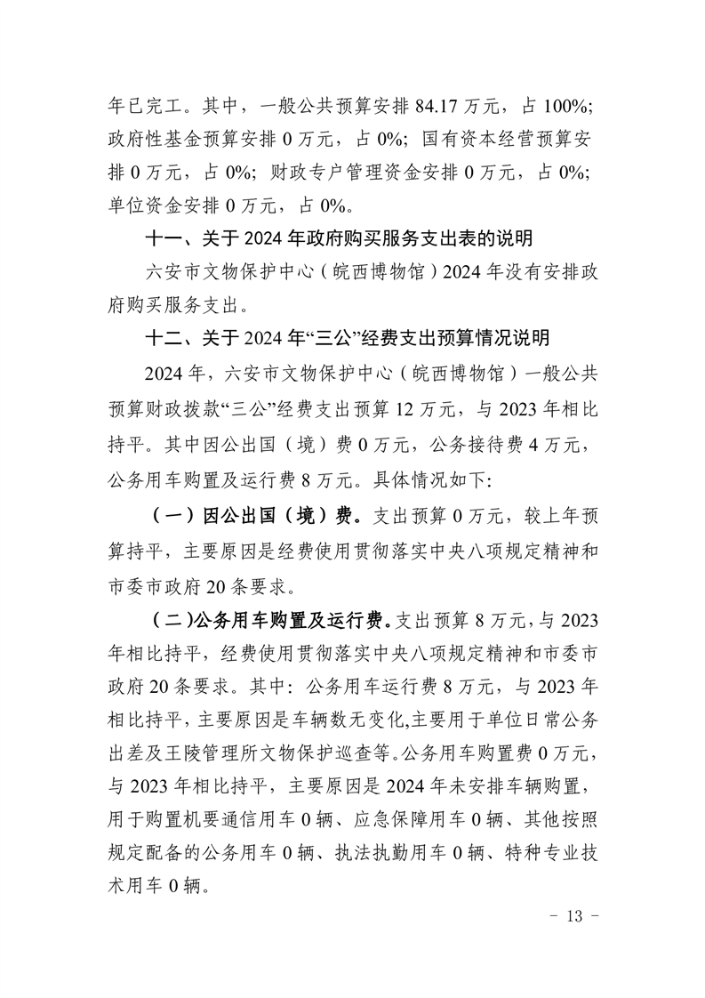 表13六安市文物保护中心(皖西博物馆)2024年“三公”经费支出预算表.pdf