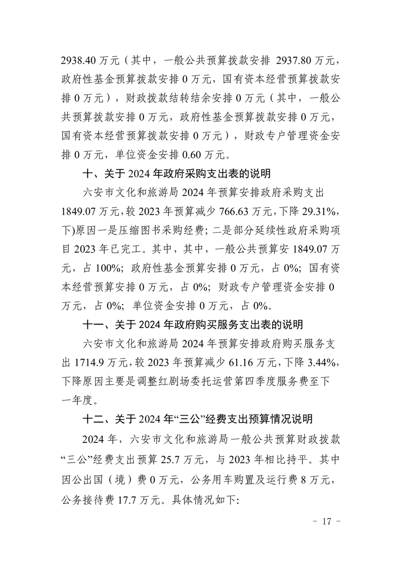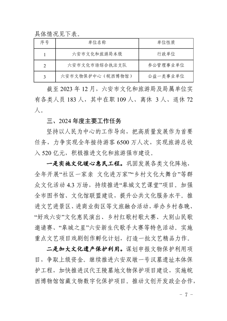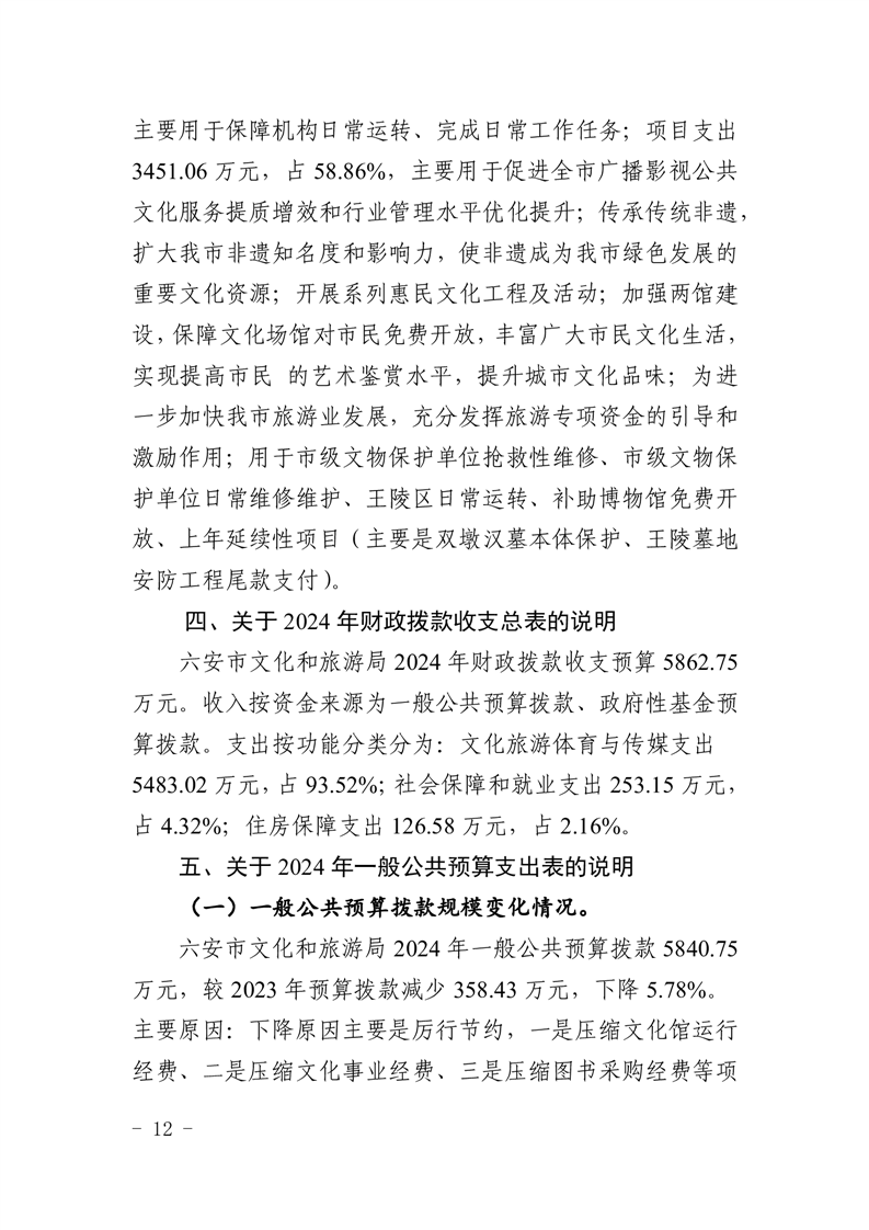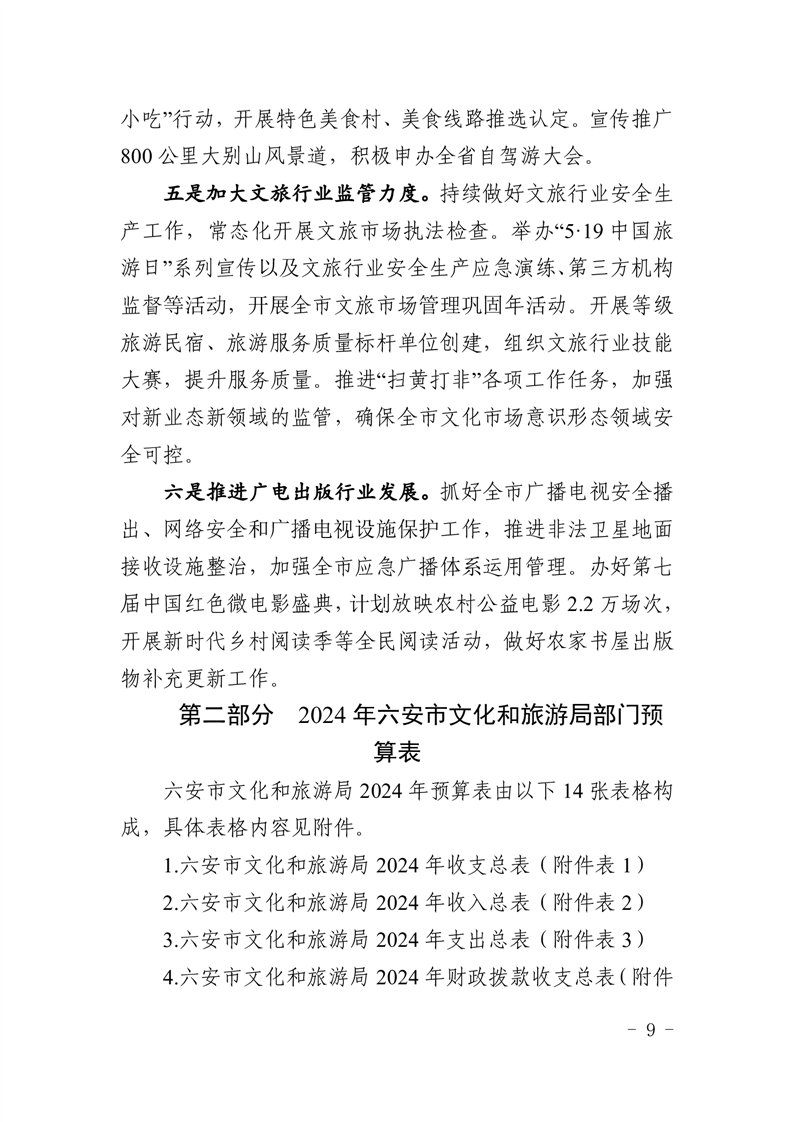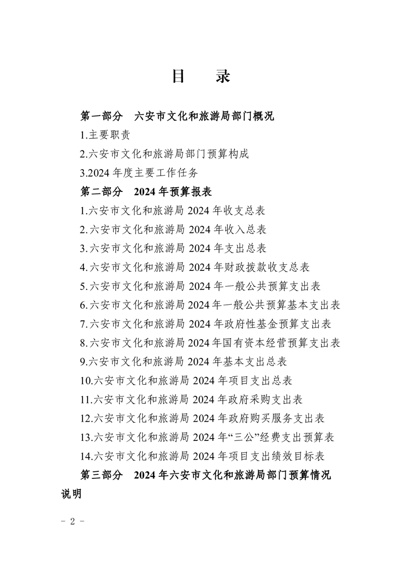 六安市文化和旅游局2024年部门预算公开