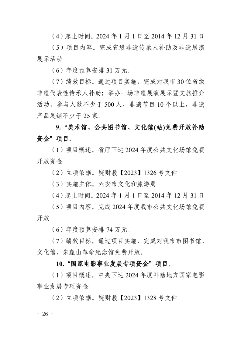 表14六安市文化和旅游局2024项目支出绩效目标表.pdf标签: