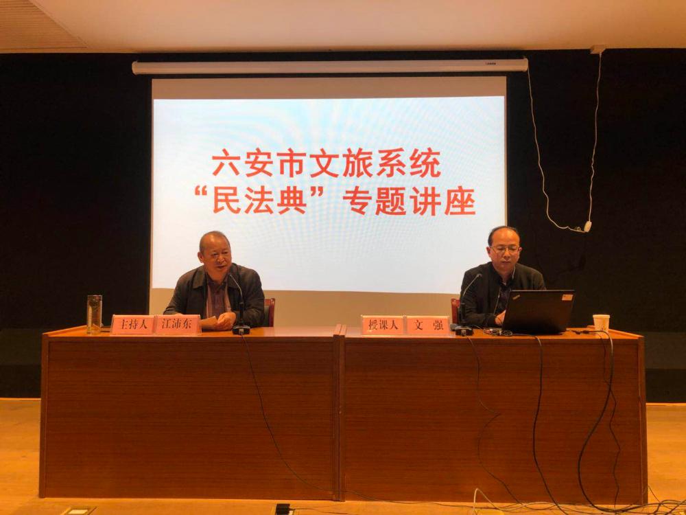 邀请六安市普法讲师团成员、市委党校法宣办主任文强作《民法典》专题讲座辅导,局属单位、机关科室共60余人参加。