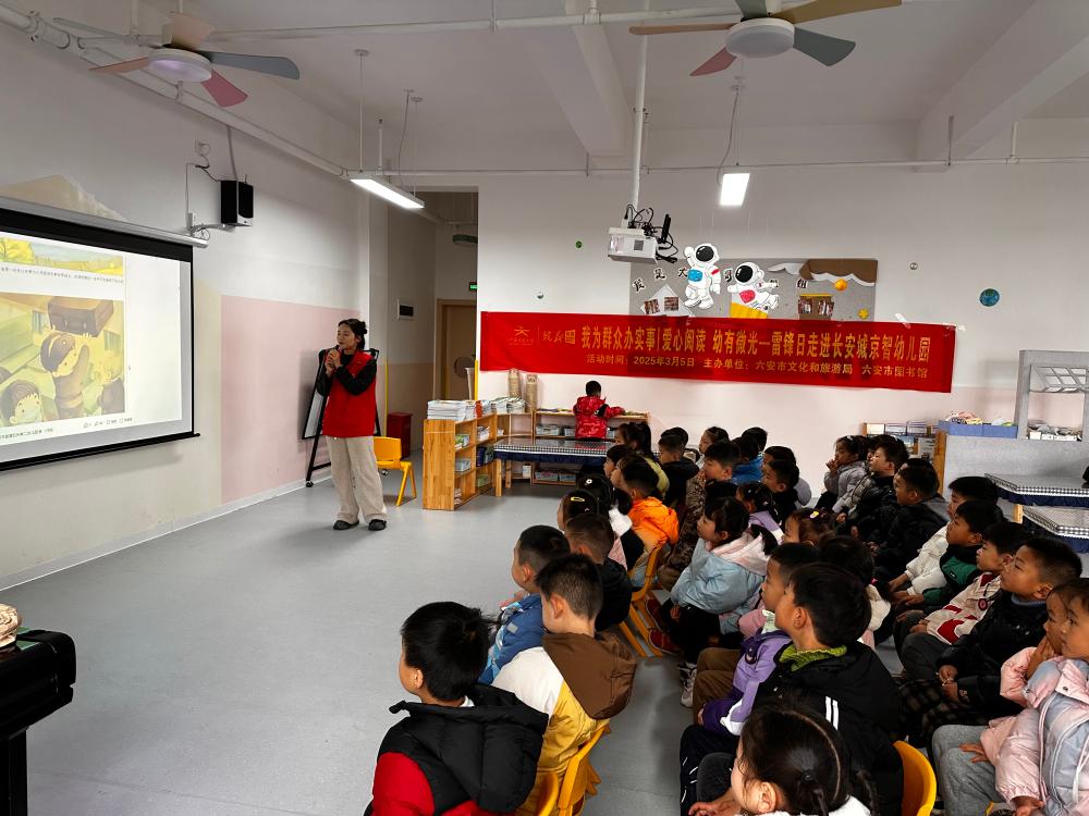 爱心阅读传承红色基因。组织开展“爱心阅读 幼有微光”活动,为长安城京智幼儿园的孩子们送去一场别具一格的红色绘本故事分享会,通过绘声绘色地讲述《雷锋的故事》《小英雄雨来》等经典红色绘本,将孩子们带入热血沸腾的革命年代,在幼小的心灵中播下红色种子。