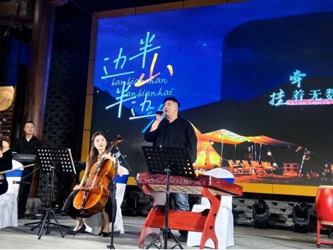 华灯初上,春雷乐队和合乐乐团轮番登场,用音乐点燃现场的热情。演出团队精心准备了一系列风格各异、广受欢迎的曲目,从经典的《市集》《天路》《云宫迅音》到古风韵味十足的《青玉案》,从充满力量感的《通天大道》《敕勒歌》到柔情的《半边山半》《边海》,再到流行金曲《好想好想》《喜欢你》以及国际流行曲目《Bad Guy》和富有特色的《上春山》,每一首歌曲都引发了观众的强烈共鸣,现场欢呼声、掌声不断。