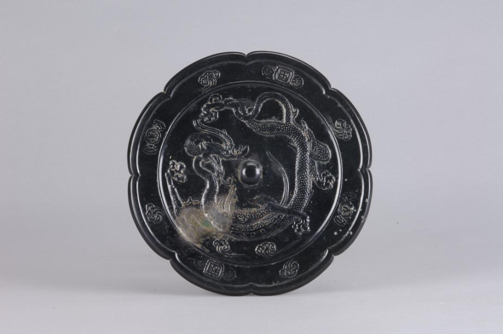 唐“千秋万春”铭龙纹葵花形铜镜,寓意自省、劝惩。
